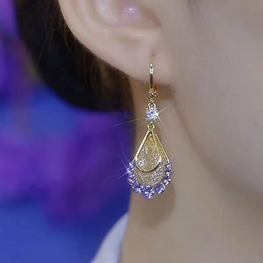 ¡DE MODA! PENDIENTES AMATISTA GOLDEN